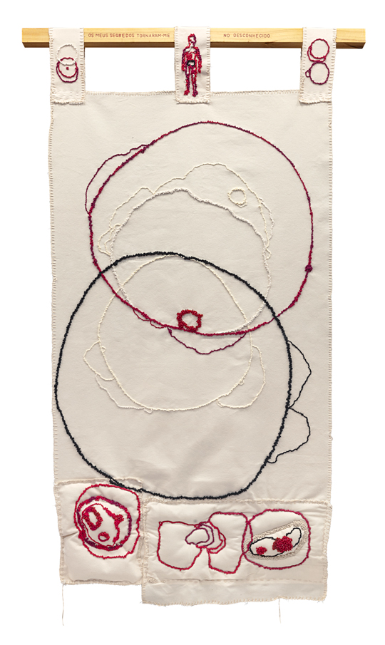 Bordado, costura e miçangas sobre lona,tecido de algodão cru [embroidery, stitching, and beads on canvas and raw cotton fabric]