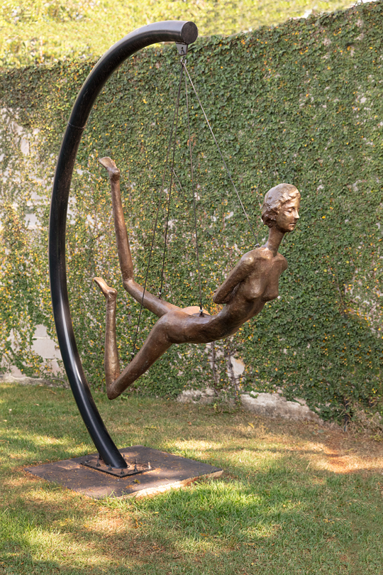 Escultura em bronze patinado e cabos de aço [patinated bronze sculpture and steel cable]